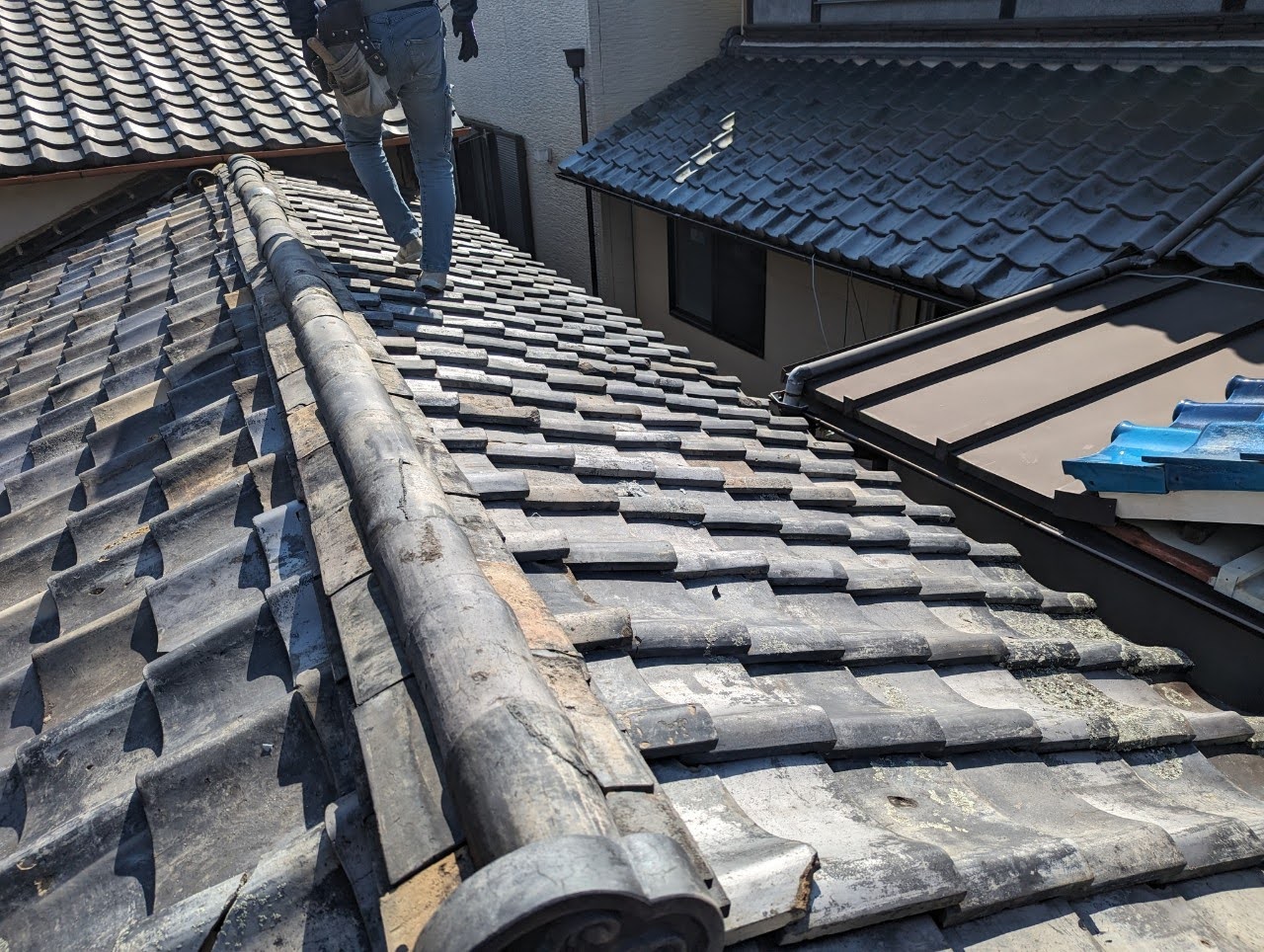 城陽市で和瓦屋根の棟の積み替えで雨漏れ補修を行いました!